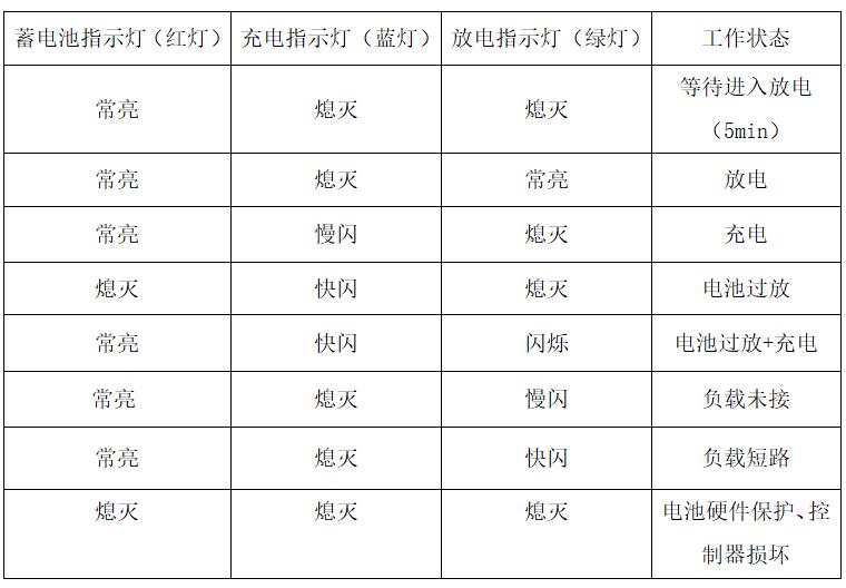 a、所有指示燈不亮,有可能電池過放,電池硬件保護,可第二天白天看指示燈狀態(tài),如紅燈常亮,藍燈閃爍,表示燈具正常充電,則燈具正常;如第二天白天看指示燈狀態(tài)均不亮,燈具有問題,需更換燈具配件。